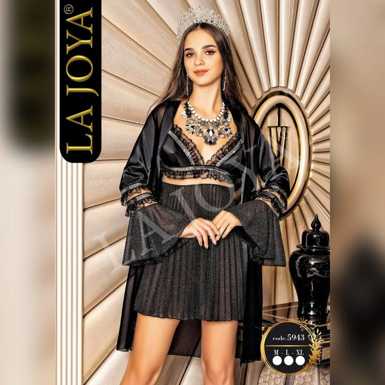 21822 لانجري 3 قطع من الساتان الناعم