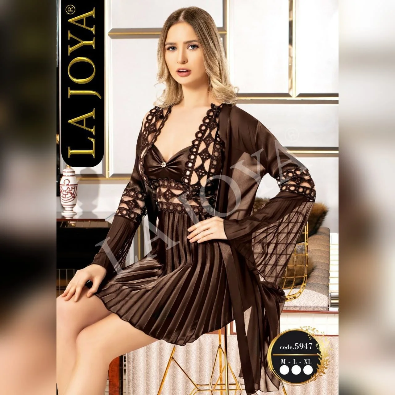 5940 لانجري 3 قطع من الساتان الناعم